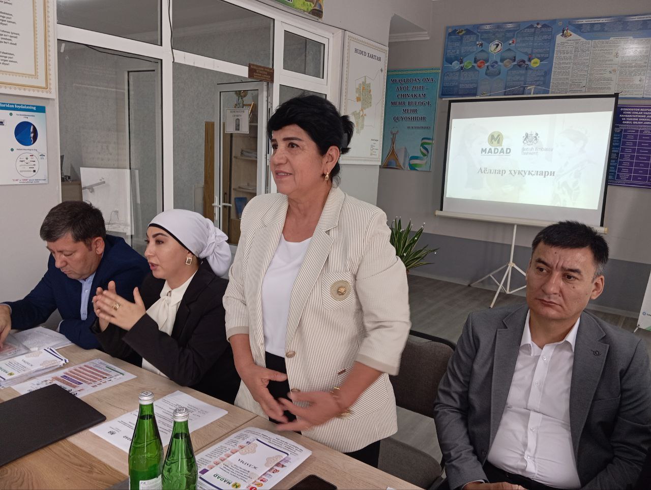 Бугун Фарғона вилояти Қўштепа туманида "Мадад" нодавлат нотижорат ташкилоти ҳамда Буюк Британиянинг Ўзбекистондаги элчихонаси ҳамкорлигида амалга оширилаётган "Ижтимоий ҳимояга муҳтож аҳолига бепул юридик ёрдам кўрсатиш ва адолатли судловдан фойдаланиш" лойиҳаси доирасида "Шодлик" ва "Шомирза" маҳаллаларида хотин-қизларнинг ҳуқуқлари, уларнинг ҳуқуқий ҳимояси ва бошқа масалаларга оид тарғибот тадбири ўтказилди.
